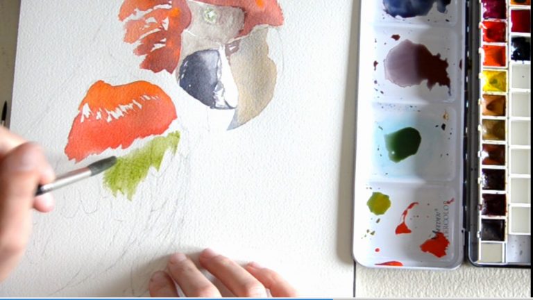 Grâce à toutes vos nouvelles connaissances ou à ces petites piqûres de rappel pour ceux qui ont déjà des notions d’aquarelle, à ce stade vous serez prêt à m’accompagner pour la création de notre joli perroquet !