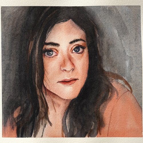 L’aquarelle est un médium fascinant qui captive le regard quand le pinceau empli de pigments touche le papier humide et laisse se répandre plus ou moins aléatoirement la couleur dans les fibres du papier. Ce jeu de dosage entre l’eau et les pigments permet des transitions douces et floutées idéales pour représenter la texture de la peau.