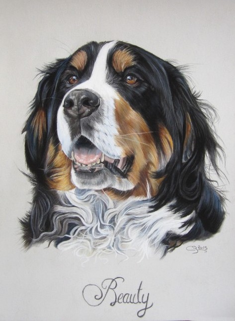 Je reviens après 15 jours très éprouvants vous présenter le portrait de Beauty, Bouvier bernois dont vous aviez peut-être eu un aperçu si vous me suivez sur Facebook. Si vous aimez cette race de chiens, vous trouverez sur mon blog un autre pastel de bouvier bernois avec le portrait d’Eclipse.