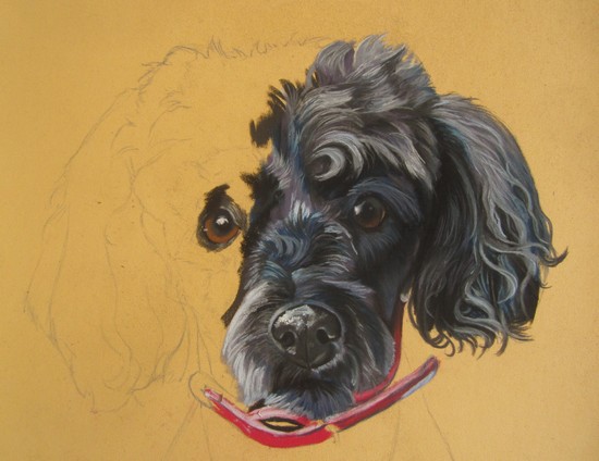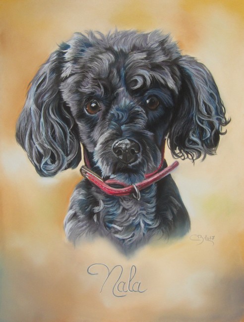 Aujourd’hui je suis heureuse de vous présenter en étapes le portrait que j’ai réalisé en hommage à la belle Nala, petit caniche noir, sur commande de sa maîtresse Stéphanie. Celle-ci m’avait déjà commandé le portrait de Tara l’année dernière, vous pouvez le revoir en cliquant ici : Portrait de chien au pastel.