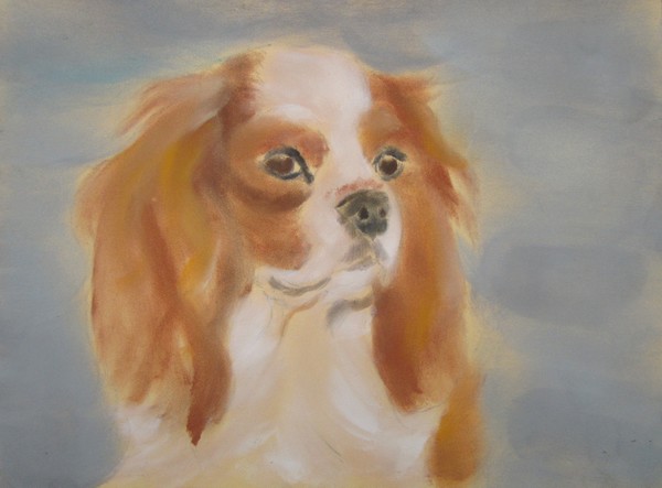 Aujourd’hui, je vous présente la commande de Framboise et de son époux Guy. Il s’agit d’un portrait en hommage à leur petite chienne Cavalier King Charles nommée Chelsea, qui leur manque beaucoup.