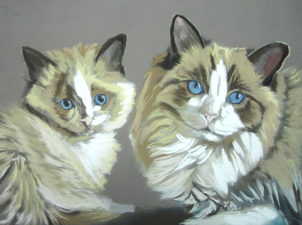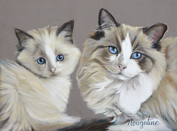 Aujourd’hui, je vous présente la jolie commande de Catherine : Sa belle Nougatine, sacrée de Birmanie, représentée à deux stades de sa vie. J’adore cette idée car nos amours changent si vite, en un claquement de doigt un adorable chaton devient un magnifique chat. Je ne me lasse pas de repenser à mon Dexter quand il était petit, si petit dans mes mains !