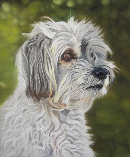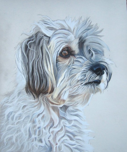 Continuons dans nos portraits aux pastels de 2015, avec cet adorable petit toutou du nom de Ticco ! Et le portrait de Ticco est l’un de ces tableaux qui est une vraie partie de plaisir car Marie Jo est une passionnée de photographie, j’ai donc pu profiter d’un modèle de qualité irréprochable.