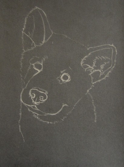 Il s’agit de supprimer beaucoup de détails. Supprimer des détails ne veut pas dire manquer de réalisme. Les chiots ont le poil si doux qu’on distingue beaucoup moins de poils individuels que sur les adultes surtout chez les sujet blancs : observez bien votre modèle pour les tracer à bon escient.