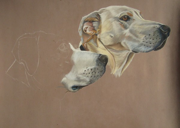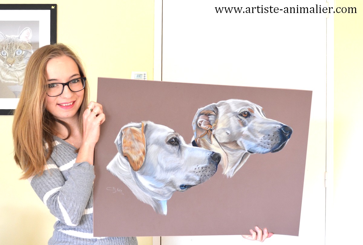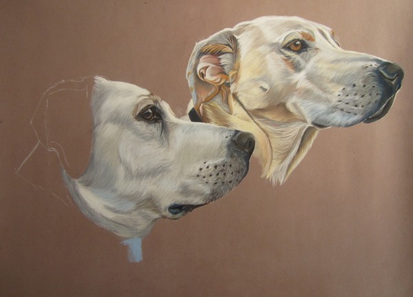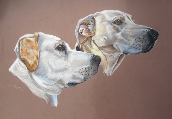 Les portraits de 2015 ne sont toujours pas entièrement publiés, j’ai encore plusieurs oeuvres qui attendent sagement leur tour. Aujourd’hui je vous montre la commande de Françoise, qui m’a fait immortaliser ses deux amours de chiennes Belle et Gipsy. Un tableau mère et fille !