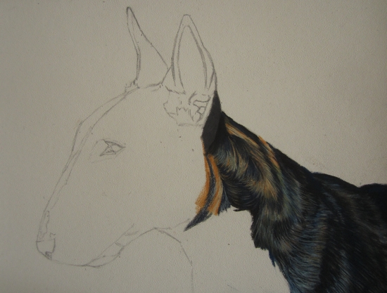 Les Bull terriers sont rares sur mon blog et je suis ravie d’ajouter à ma galerie le portrait de la jolie Laïka ! Il y a quelques temps je vous avais montré un portrait de chat avec Hélix le ténébreux, eh bien Laïka est sa copine puisque c’est leur maîtresse Marine qui m’a passé cette double commande.