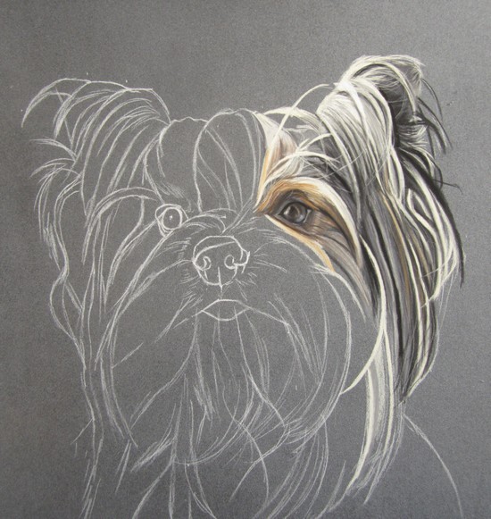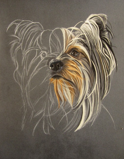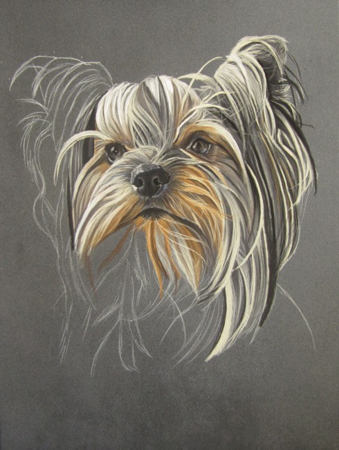 Si vous aimez les portraits de York, vous pouvez voir sur mon site mes précédentes peintures animalières de cette race en particulier : Les trois Yorks aux pastels de Chantal (Charlie, Hardy et Pierrot), le portrait de Yorkshire de Danièle (Hiouki), et enfin le portrait du York de Françoise (son regretté Samy).