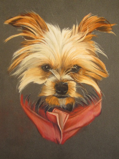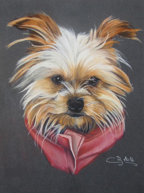 Cela faisait un petit moment que je n’avais pas eu l’occasion de faire le portrait d’un Yorkshire ! Aujourd’hui je vous présente celui de Cerise, une petite chienne vraiment adorable que j’ai eu le plaisir d’immortaliser en format mini (18*24cm). Si vous aimez cette race, il y a d’autres pastels de yorkshires sur mon site 🙂